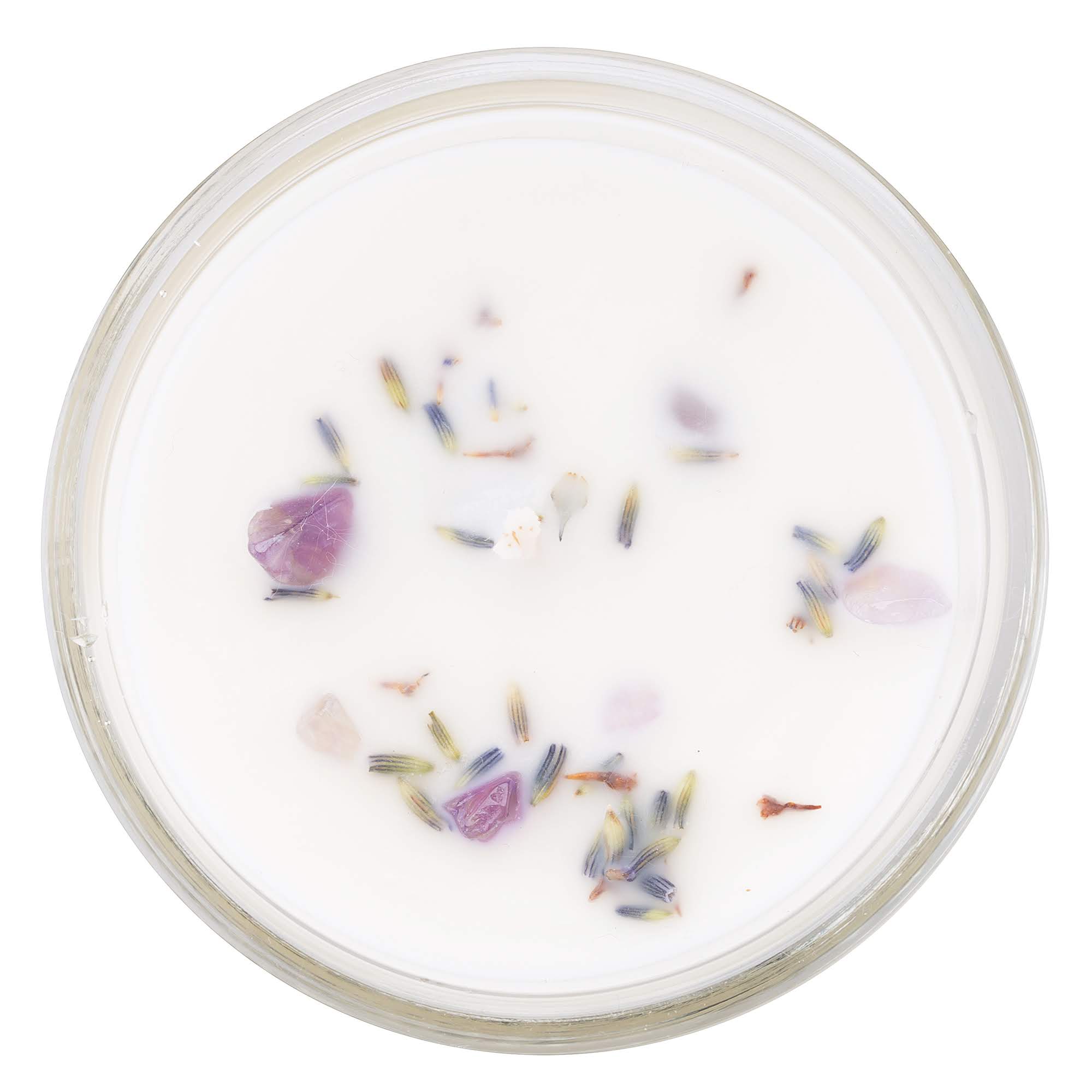 Lighting an Amethyst Soy Candle puts you on the path to relaxation and clarity. Genuine lavender flowers rest along the surface while fragrant notes of Italian lavender and bergamot join to calm and soothe you. These are balanced by base notes of white wood and white amber that create a sweet, subtle woodsy complement.